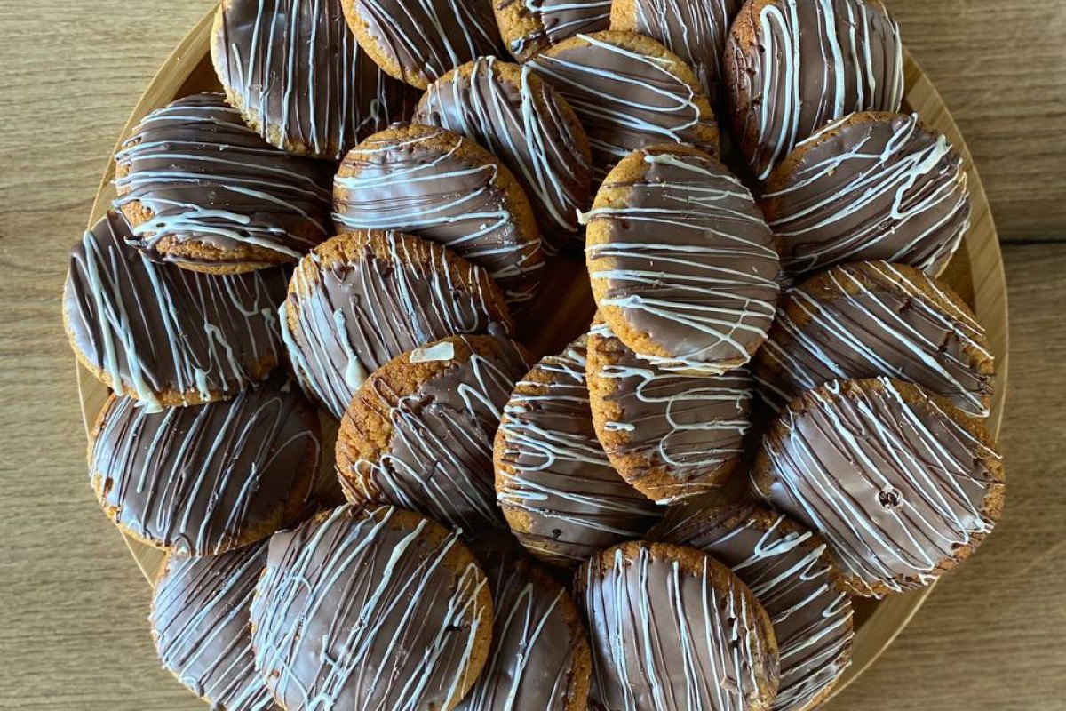 Դարչնային խմոր խտացրած կաթի միջուկով, սև շոկոլադ